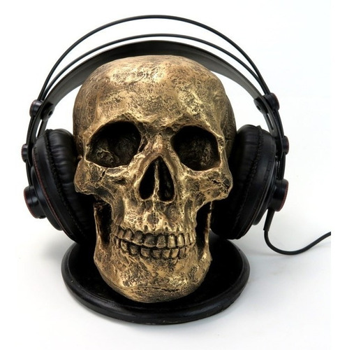 Cranio Caveira Esqueleto Suporte Headset Ou Fone De Ouvido Ouro Envelhecido