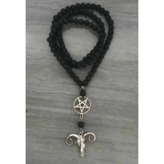Colar de contas com pingente Pentagrama Invertido E Caveira Crânio De Bode