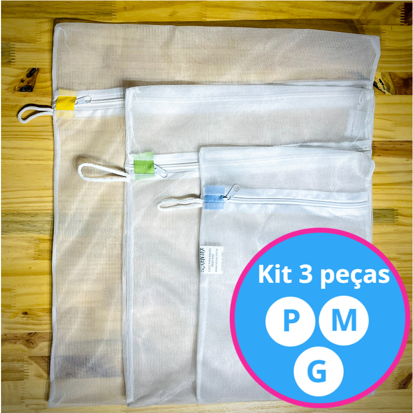Kit 3 Saco Para Lavar Roupas na Máquina Com Ziper (P,M,G) Protetor de Roupa Íntima Tecido Delicado