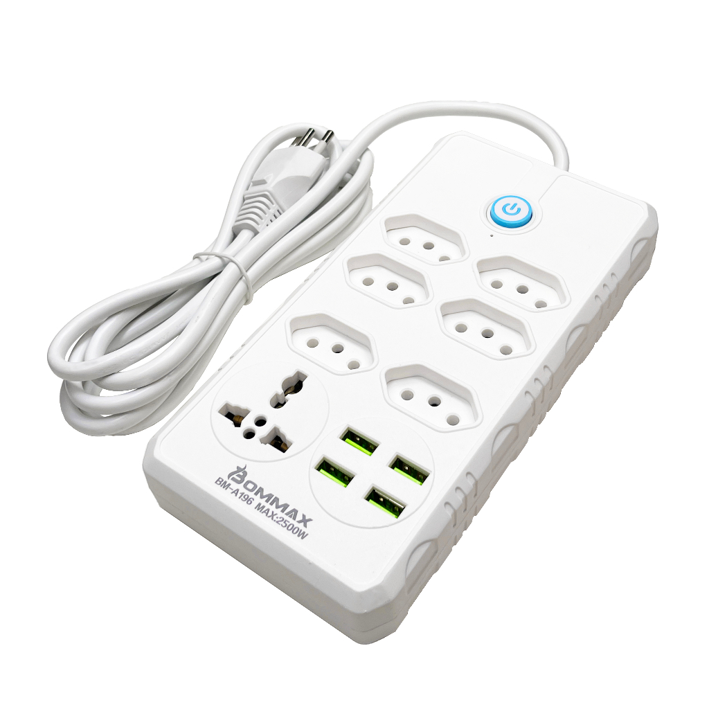 Extensão Régua Filtro de Linha 6 Tomadas 1 Universal 4 USB 2m - Bommax A196