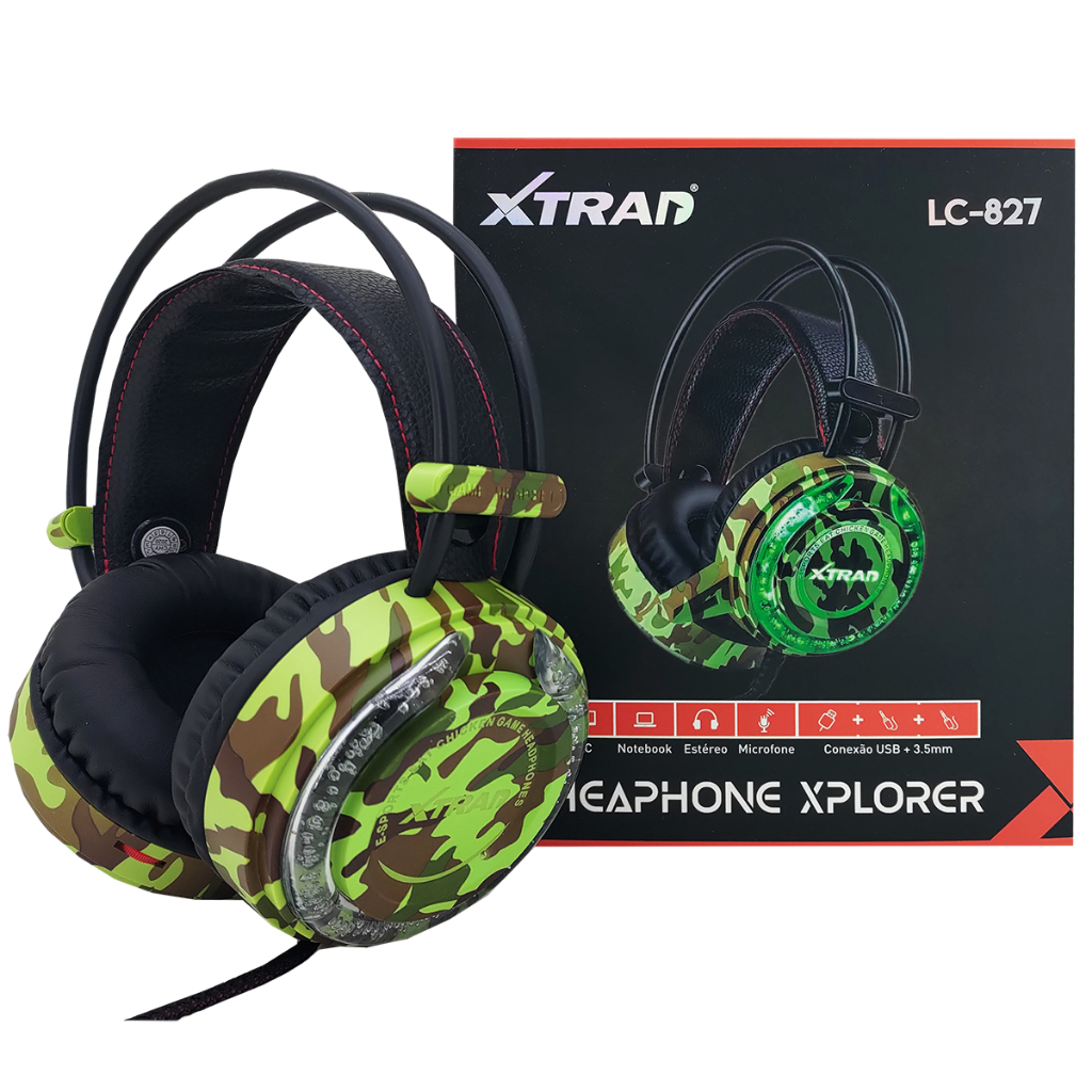 Fone de Ouvido Com Fio Gamer Microfone Camuflado Para Jogos PC Notebook Original