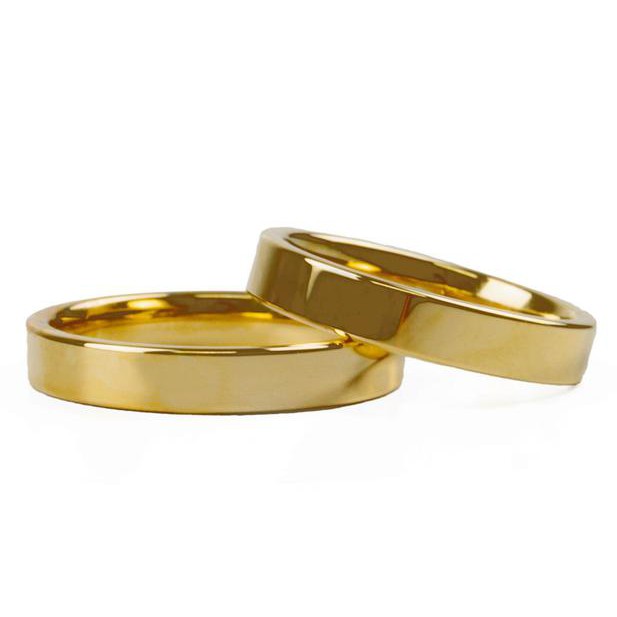 Par de Aliança Reta Anel Chanfrado 4mm Aço Inox Banho de Ouro Dourada 18k Anel De Compromisso Namoro e Casamento
