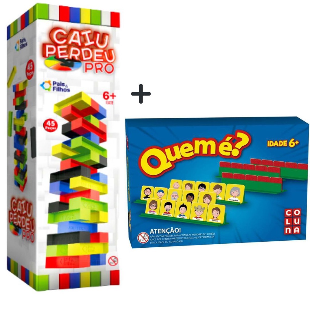 KIT Jogo Quem é? (Estilo Cara a Cara) + Jogo Caiu Perdeu PRO C/45 Blocos Coloridos e Seta Giratória