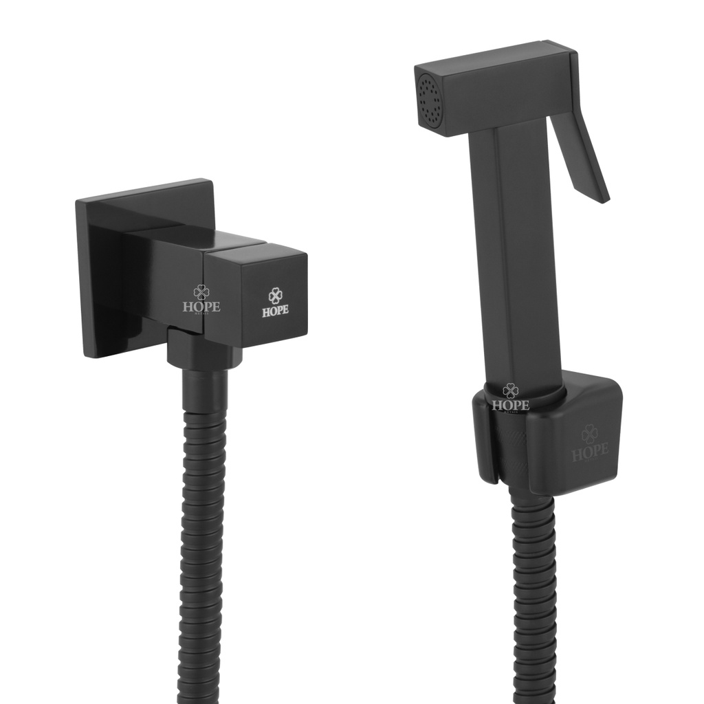 Ducha Higiênica Intima Chuveirinho Banheiro Quadrada Luxo Metal 1/4 de volta Preto Fosco Hope Metais