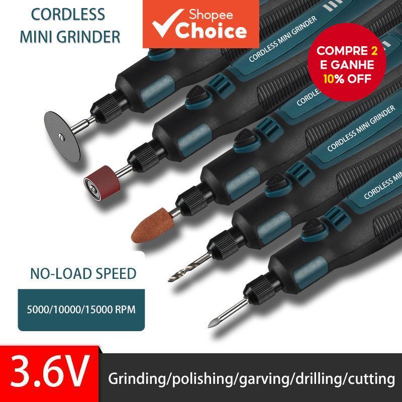 Kit de Mini Retífica Sem Fio com Ajustes de 5000-10000-15000r Velocidade Variável Broca Elétrica para Gravação e