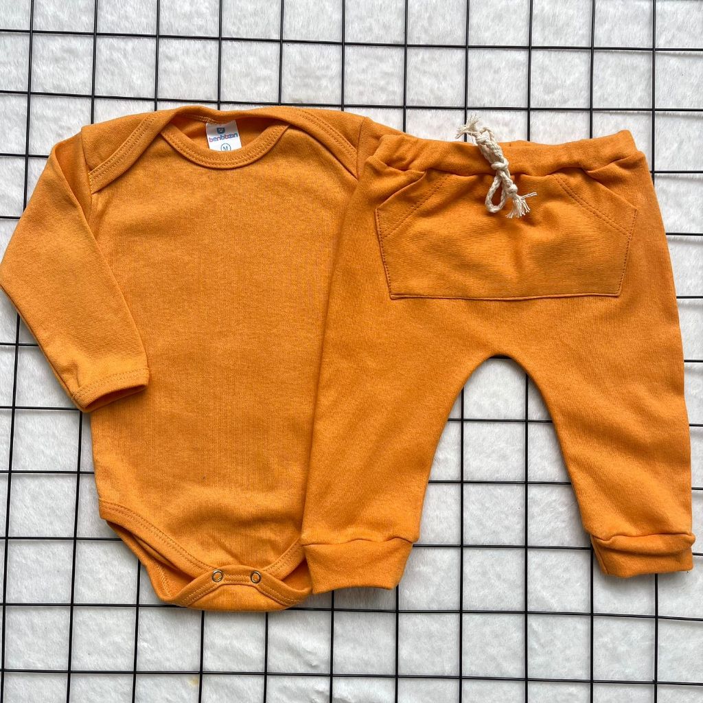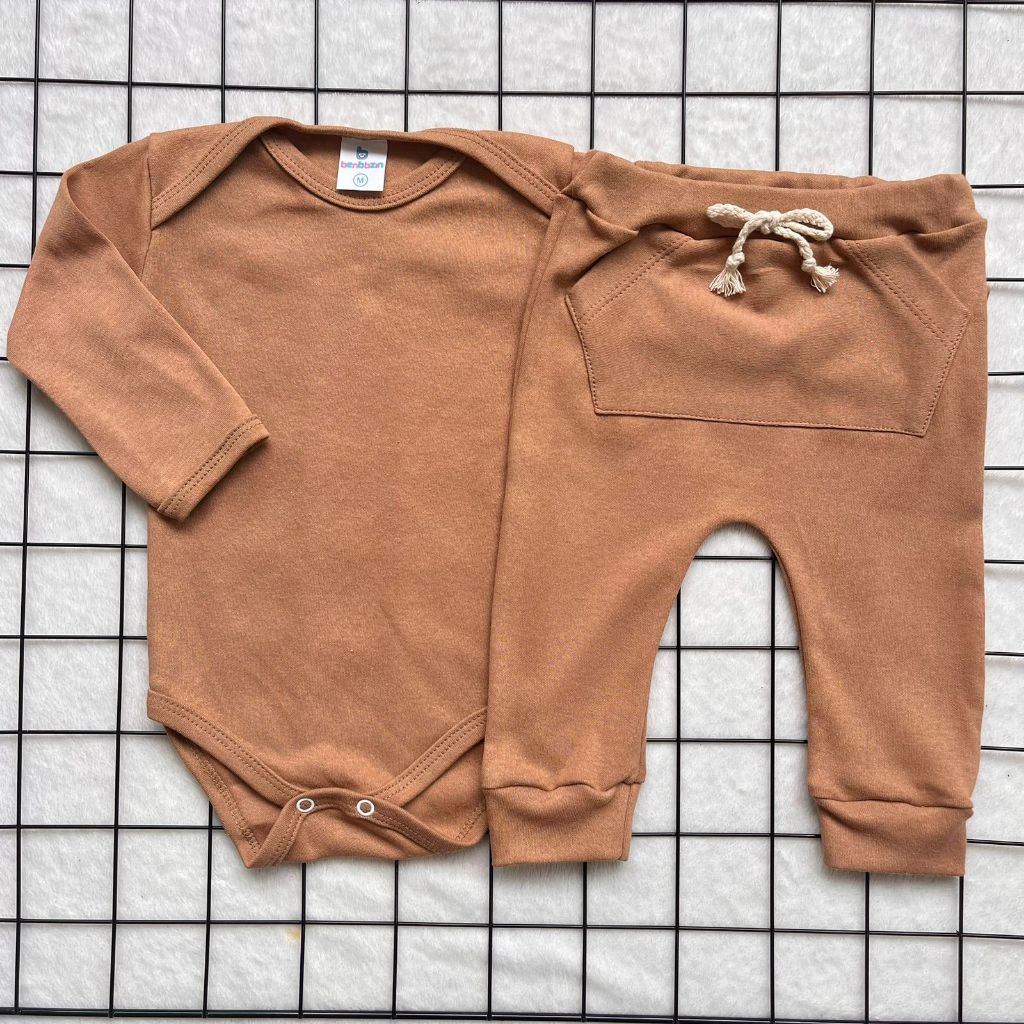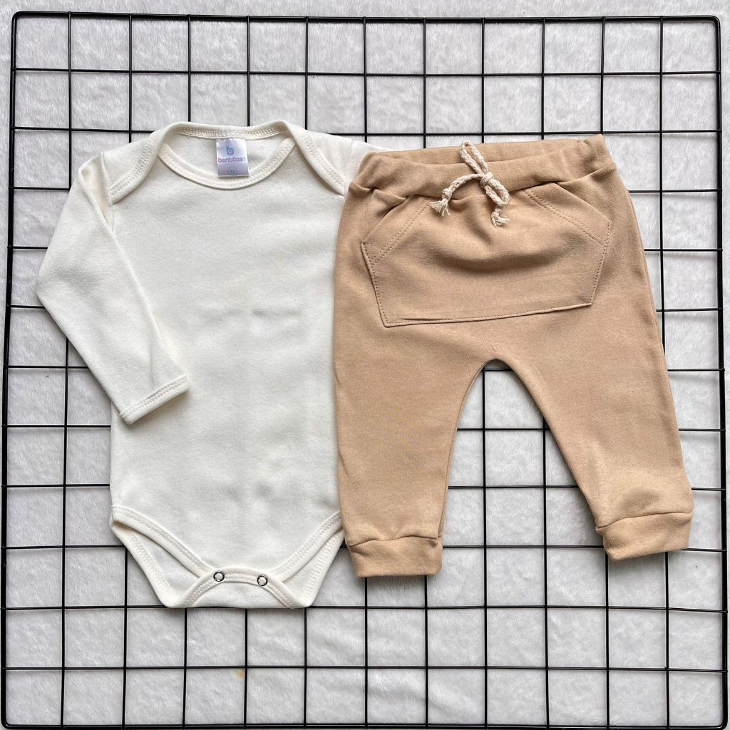Conjunto de Bebê Menino Body e Calça Saruel Marrom 100% Algodão