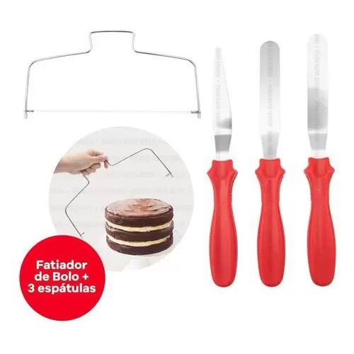 Kit Nivelador E 3 Espátulas Para Confeitar e Fatiar Inox Bolos Alta Qualidade