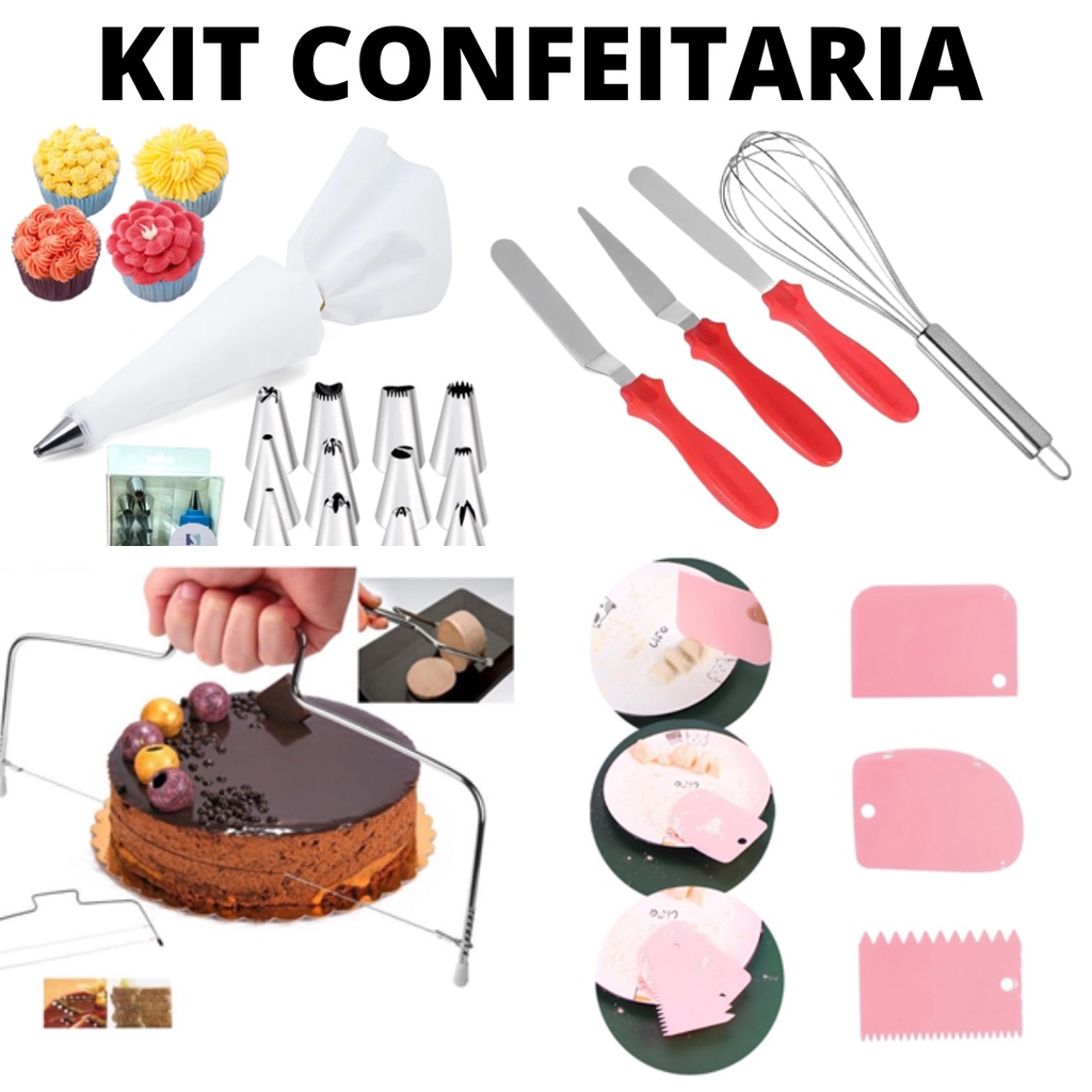 Kit Confeitero Com Espatulas Bico E Nivelador Para Confeitar Alisar Decorar Bolos