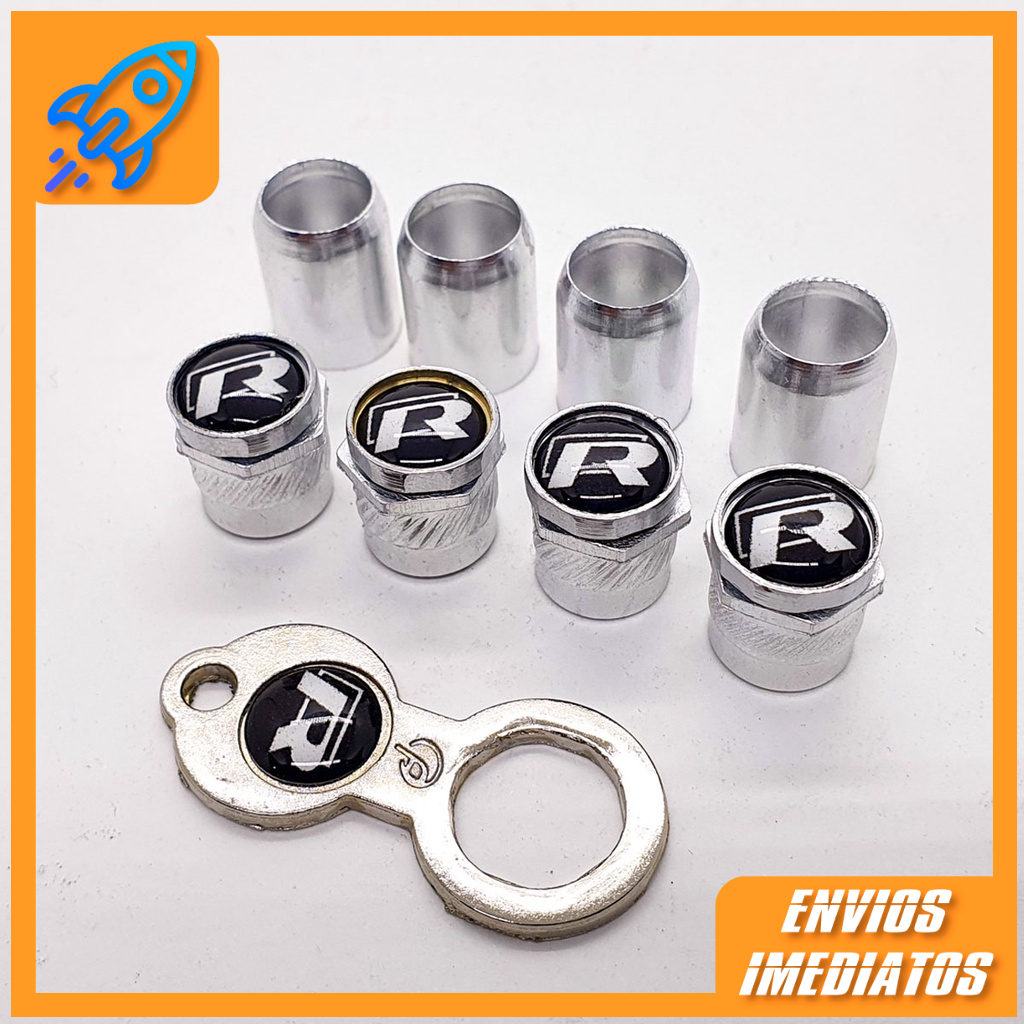 Tampa Bico Valvula Antifurto Capa Cromado - Vw R Line Preto - Acessorio Automotivo para Pneus e Rodas - Kit para as 04 Rodas do Carro