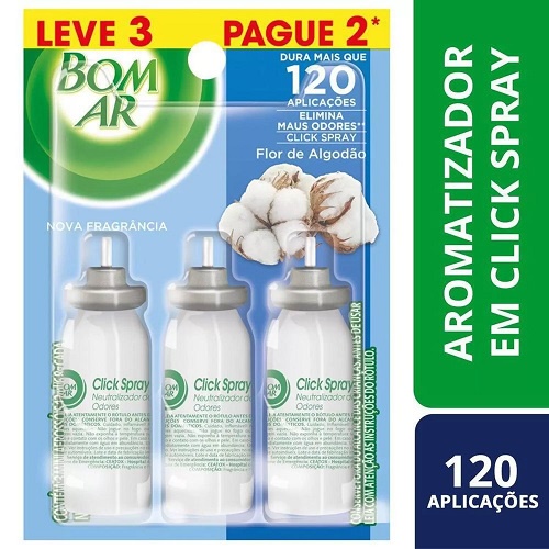 Bom Ar Aromatizador Click Spray Flor de Algodão 12ml 3 Refis - AIR WICK