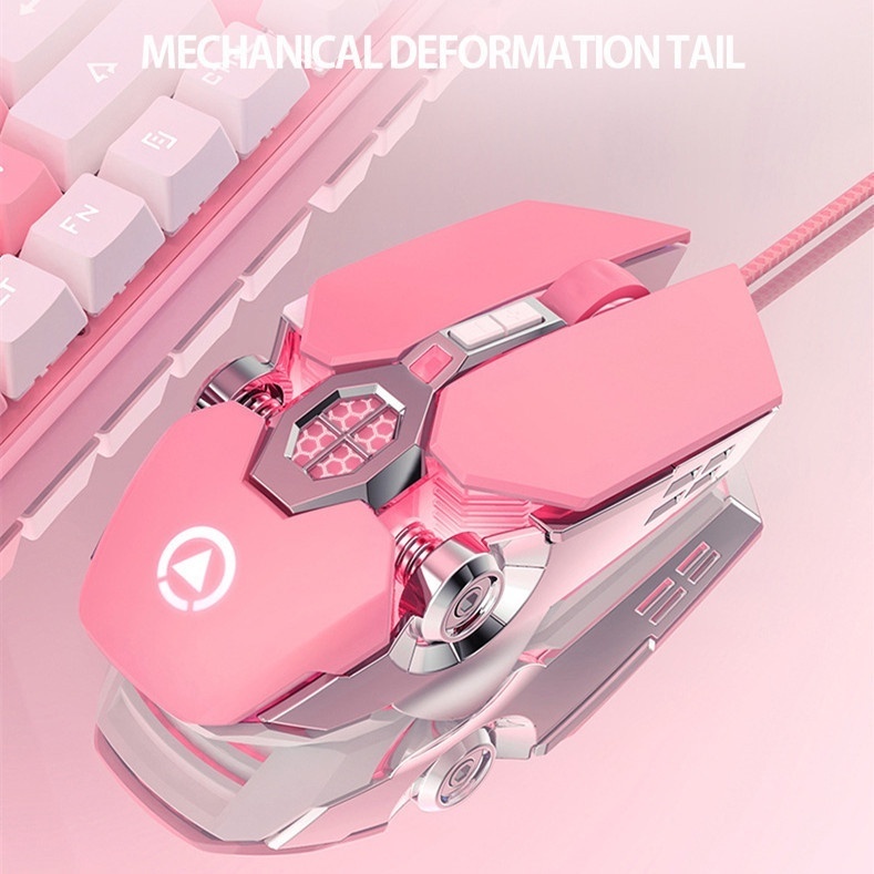 Rato Mecânico Rosa E-sports Macro Game Luminous Wired Mouse DPI Ajustável 800/1200/2400/3200 Para PC Laptop