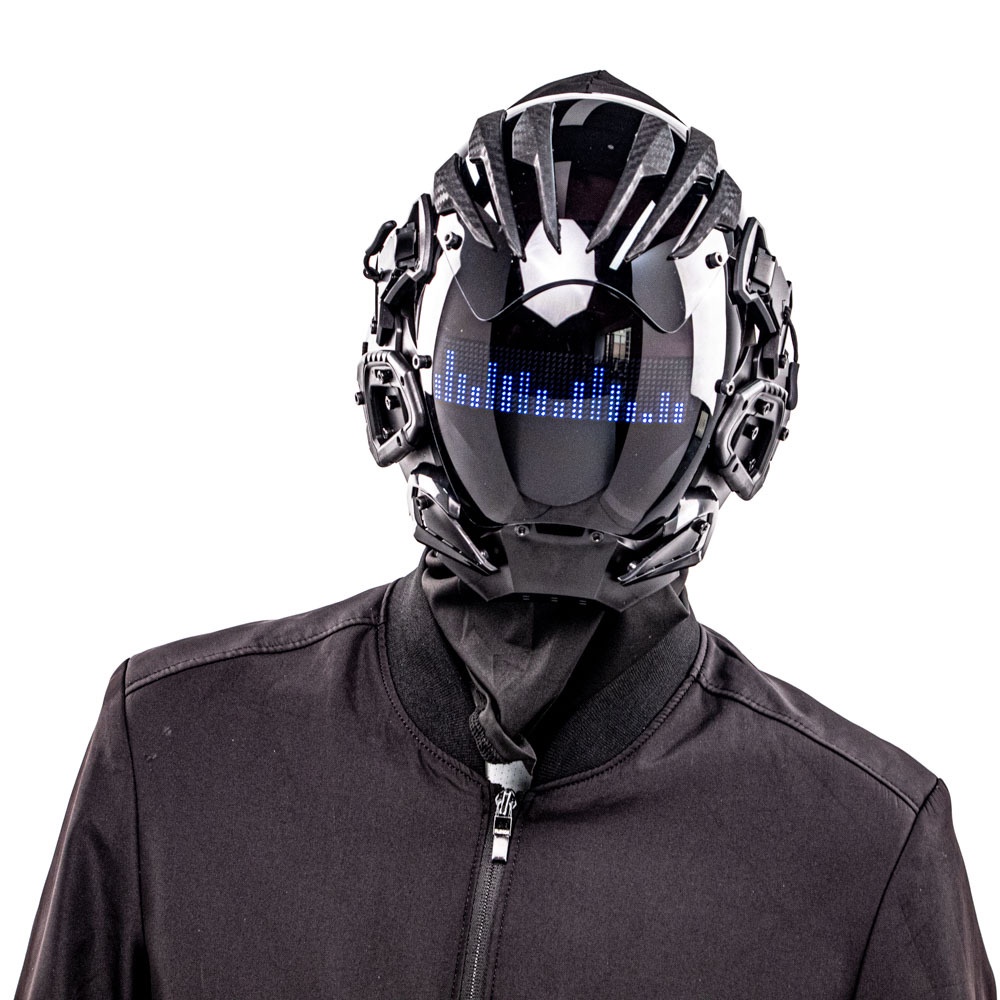 Cyberpunk Máscara Preta Led Luminous Full Face Cover Bluetooth Controlável Para Cosplay E Comic Show