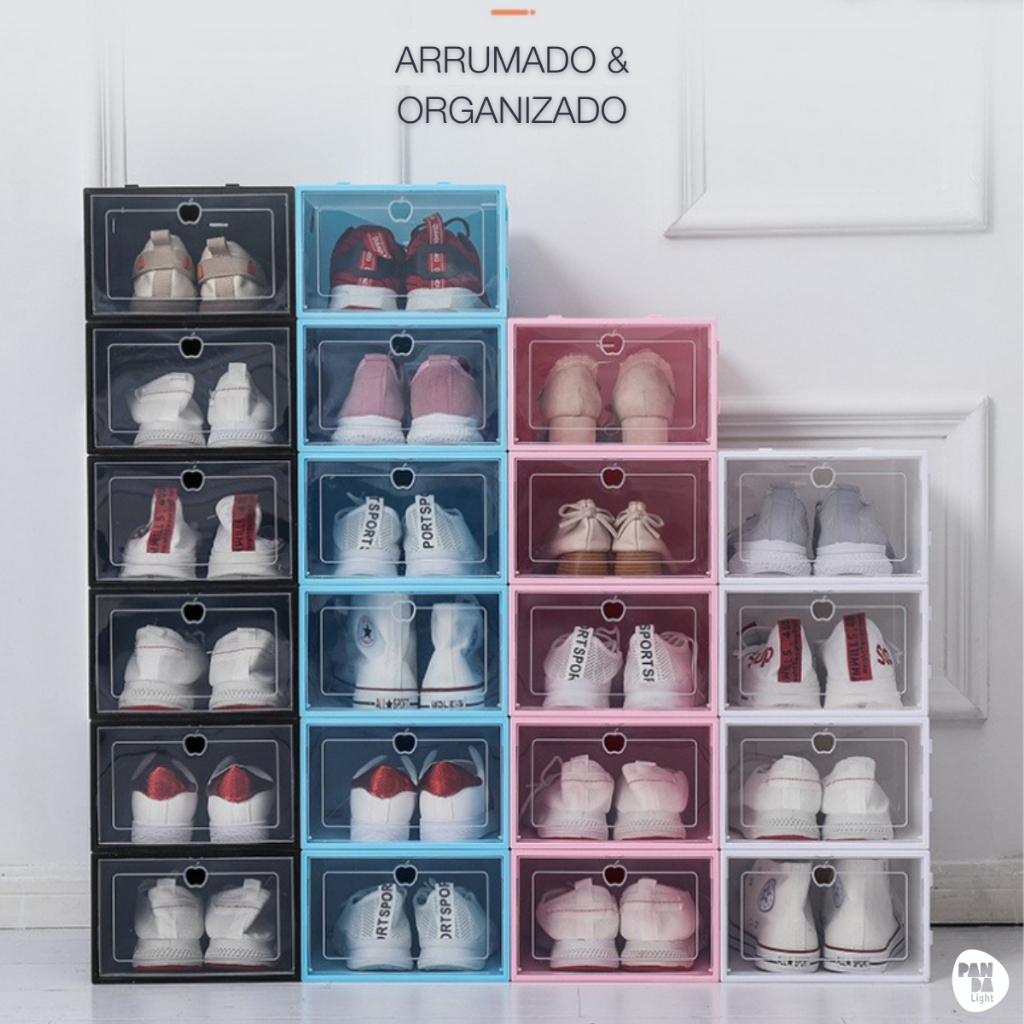 Caixa De Sapato Dobrável Armazenamento Transparentes Sapateira Empilhável Prova De Poeira Dormitório Armário Simples de Plástico