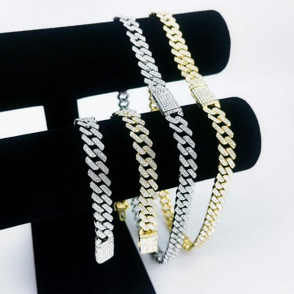 Corrente Masculina Pulseira Hip-Hop Hipster Masculina Cuban Link Chain Diamond Bracelet 14mm Diamante Colar Hiphop Masculino De Cheio