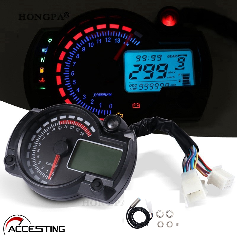 Instrumento Universal De Motocicleta 12V Painel Digital LCD Modificado Velocímetro Tacômetro Medidor De Velocidade Tela De 7 Cores Retroiluminada 0-10000RPM