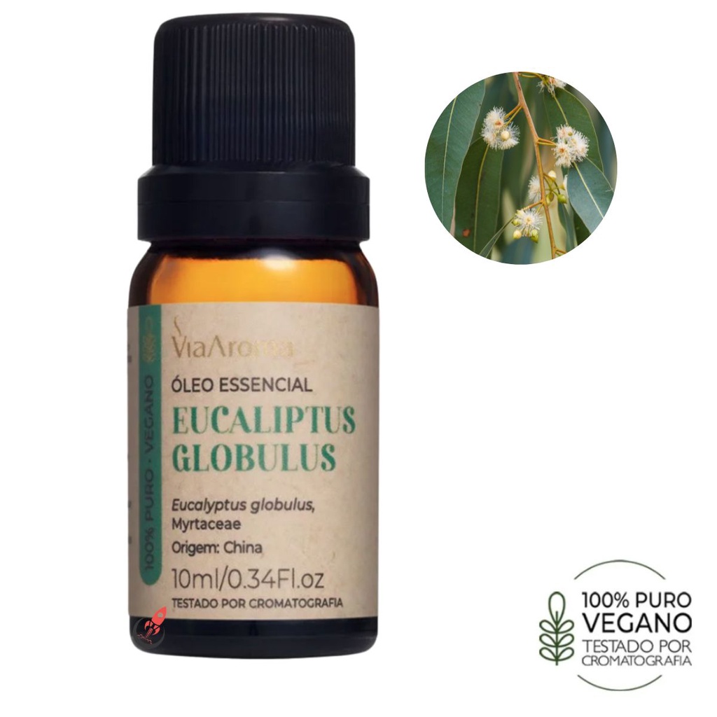 Óleo Essencial Eucaliptus Globulus 10ml Via Aroma 100% Puro e Natural para Aromaterapia e Aromatizador Difusor Elétrico