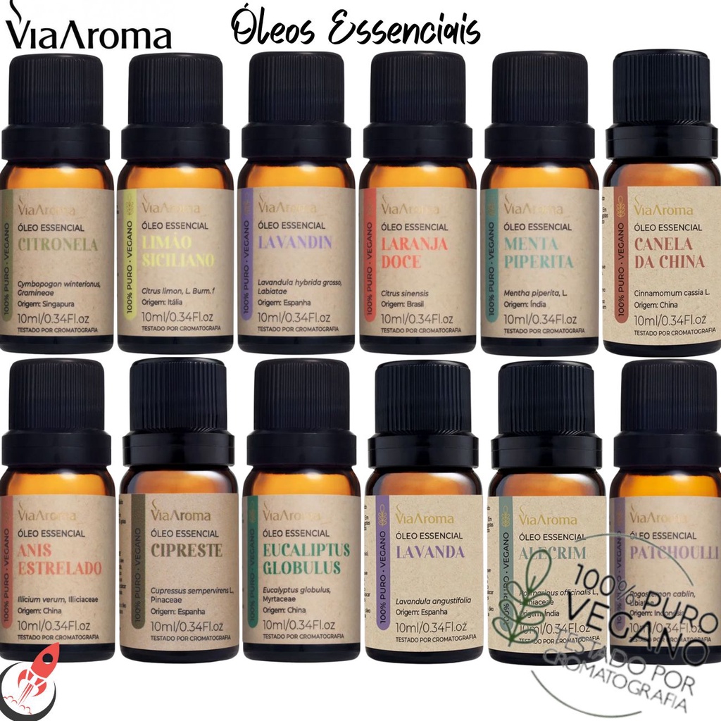 Óleo Essencial Via Aroma Para Aromaterapia 100% Puro E Natural Linha Completa