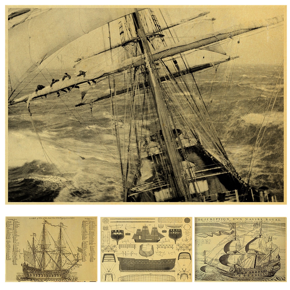 Poster Retro Antigo Warship Mapa Náutico Carto Decoração De Casa Pintura Núcleo Desenho Pendurado Imagem Quadrinhos Navio Foto Papel De Parede