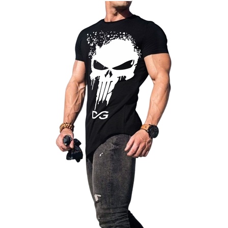 Camiseta Manga Curta Justiceiro Preta Academia Fitness Musculação Esportes Crossfit Dry Fit