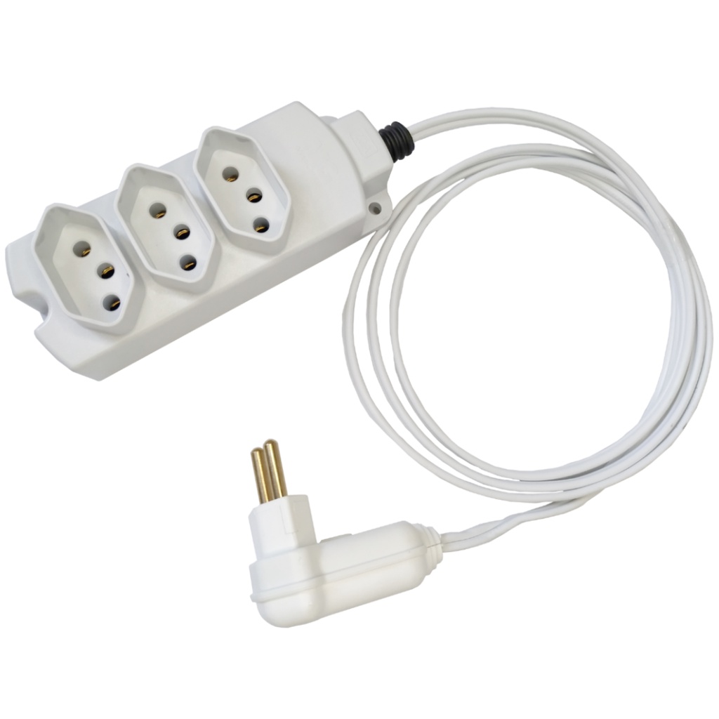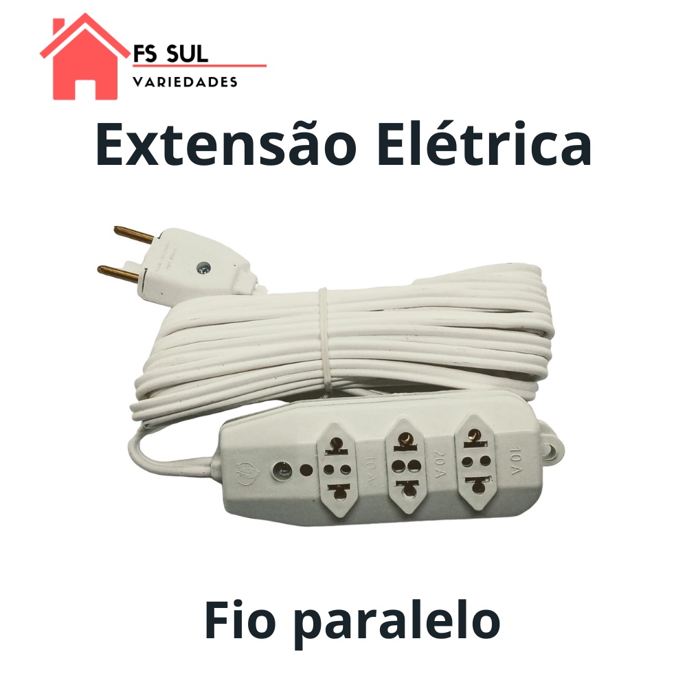 Extensão elétrica Branca( 30; 25 ; 20 ; 15 ; 10; 5 ; 2 ; 1 ; metros estensao de energia 3 tomadas Bivolt Padrão Novo/antigo 10/20A