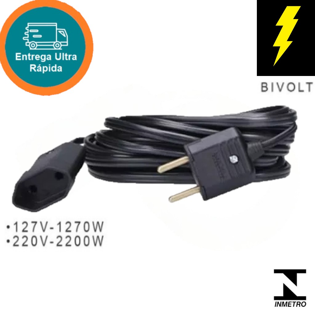 Extensão Elétrica Cabo PP 2X2.50mm de 1,5/3/5/10/15/20/30/50/100 Metros