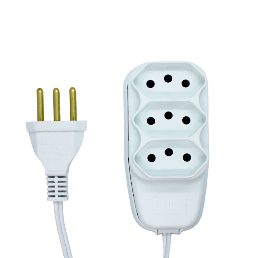 Extensão Elétrica Econômica Branca com Cabo Pp Chato 3 Vias 2,5 Metros 10A 250V Ilumi