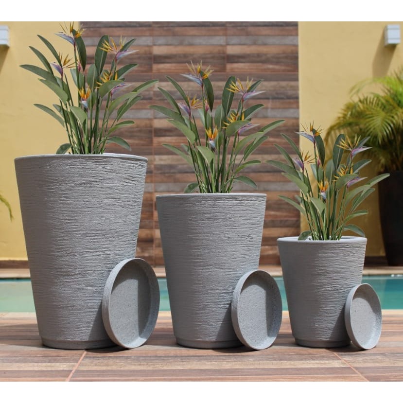 Kit 3 Vaso Redondo Decorativo Cone P, M, G em Polietileno com Prato