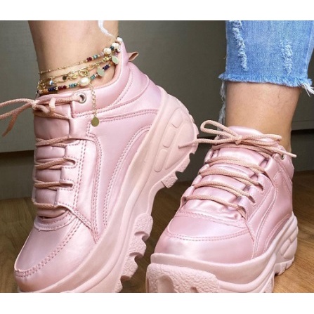 Tênis feminino lançamento na Promoção PLATAFORMA Para Dia a Dia Rosa