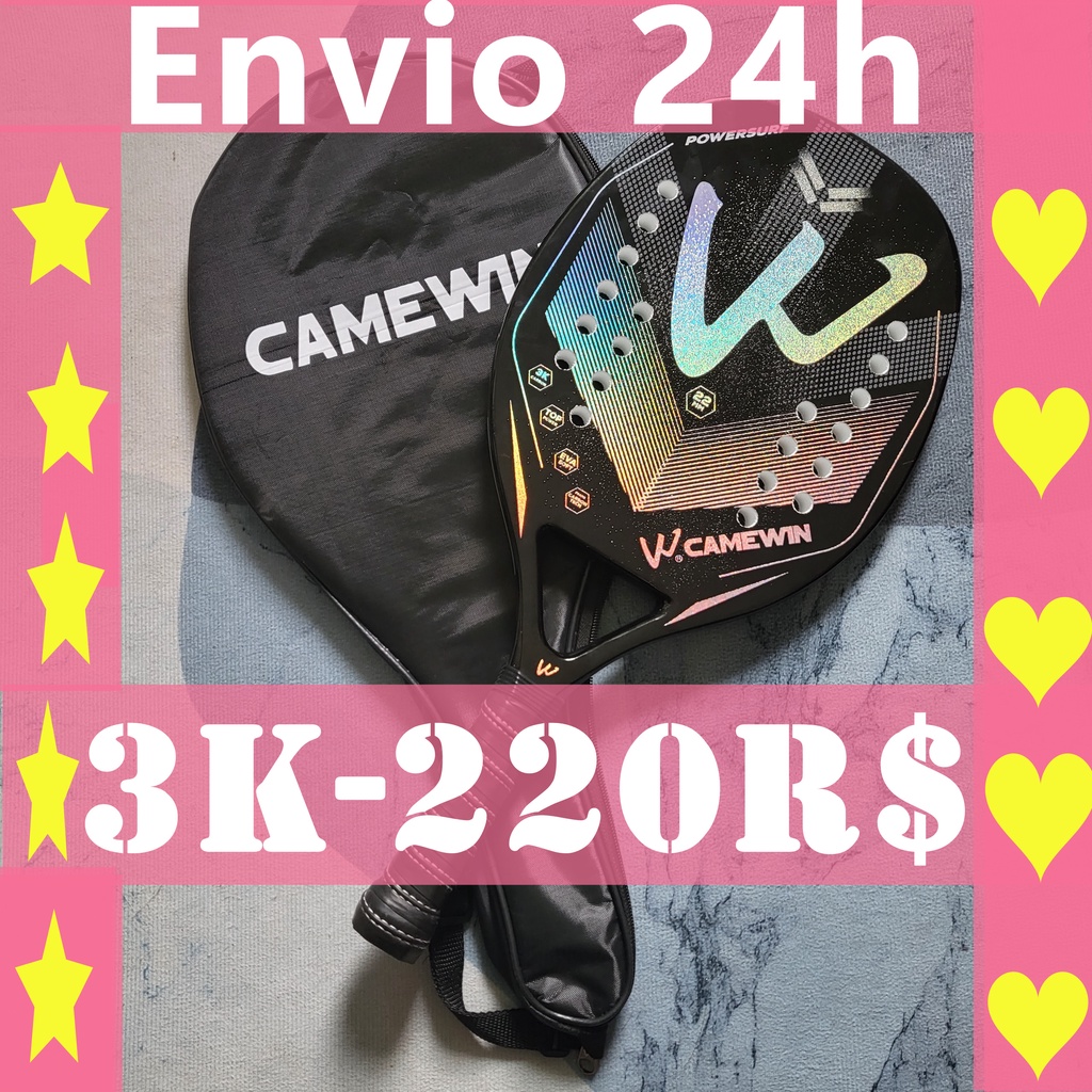 Raquete Beach Tennis Camewin 3k Profissional - 100% Fibra de Carbono + Raqueteira + Munhequeira + Overgrip- Envio imediato do Brasil! Pronta entrega!