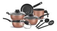 Conjunto de Panelas e Utensílios Antiaderente com Tampa de Vidro Tramontina Turim Cereja 11 Peças
