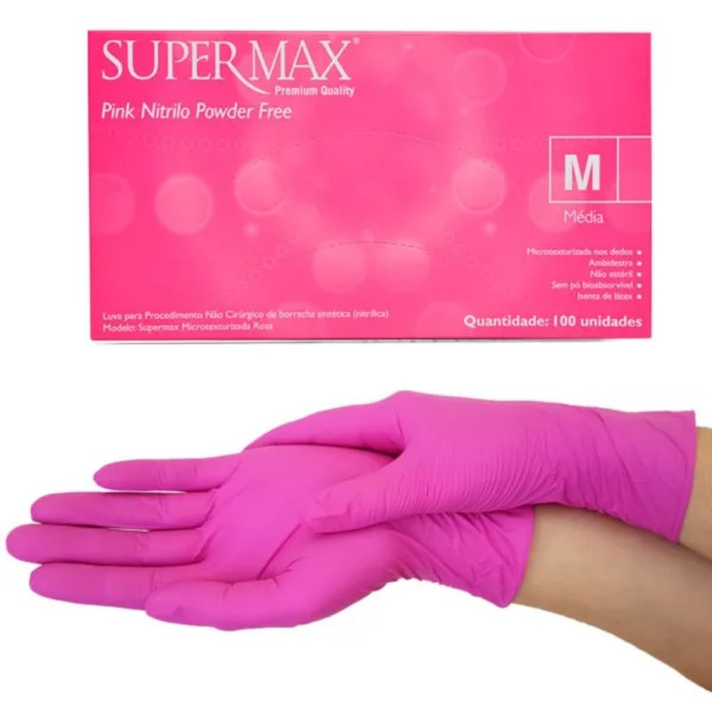 Luva Descartável Nitrílica Rosa Pink com 100 Unidades - Supermax