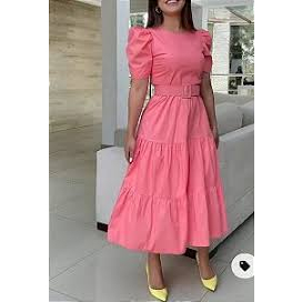 Vestido Midi Feminino Social Crepe Tendencia Com Cinto Manga 3/4 Moda Evangelica Congresso Plus Size