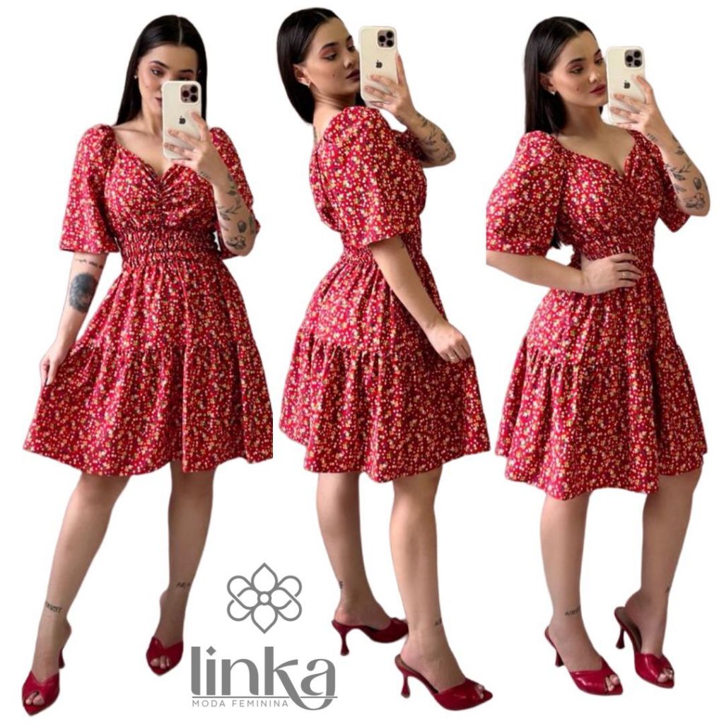 Vestido Curto Feminino Boneca Rodado Soltinho no Sedinha Manga 3/4 com Elástico na Cintura