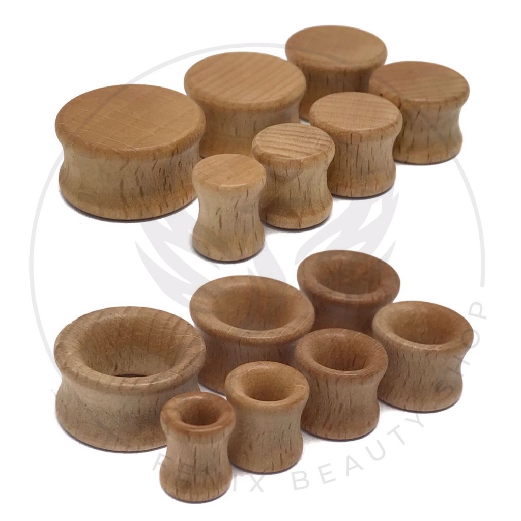 Brinco De Madeira Natural Flare Dupla 2 Peças Unissex 6-22mm