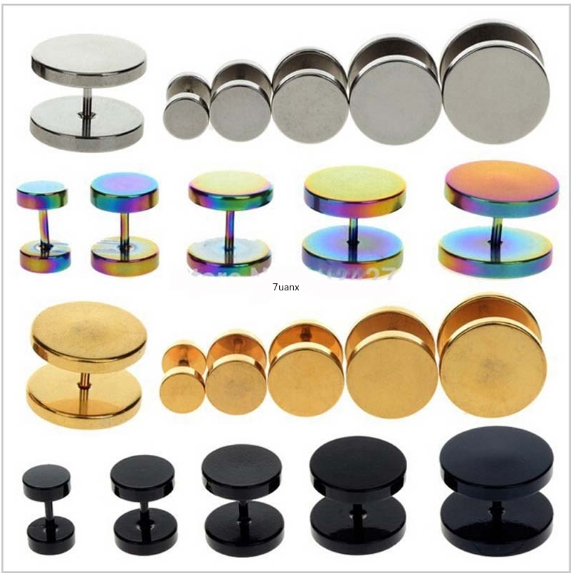 Brinco Aço Inoxidável De 2 Peças / Alargadores Pretos De Ouro / Prateado De 6 A 14mm