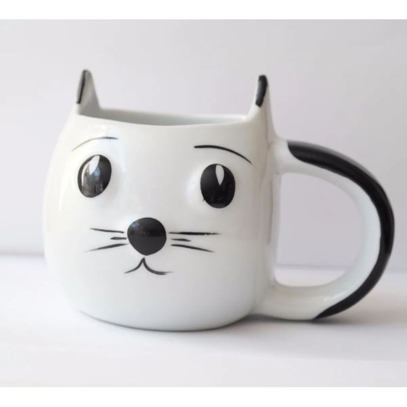 Caneca gato branco de porcelana 350ml
