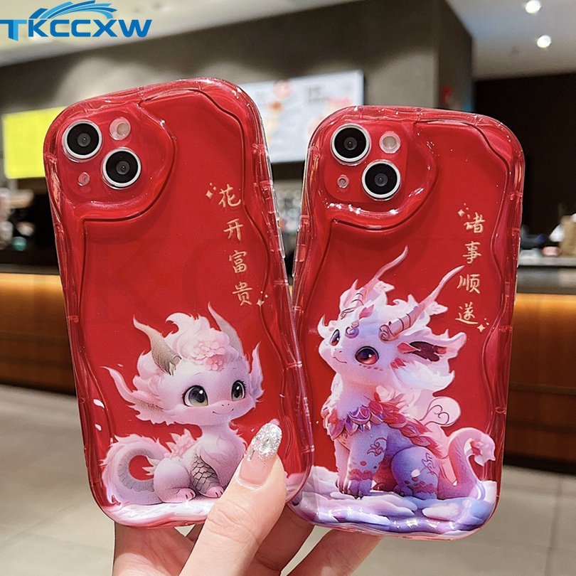 Capa Vermelha Para Xiaomi 13T Pro 13 12 12X Mi 11 Lite Poco X5 C55 C50 C31 X3 NFFC X3 M3 M5S Lisa Curva Borda Telefone Ano Novo Dragão Chinês Macia