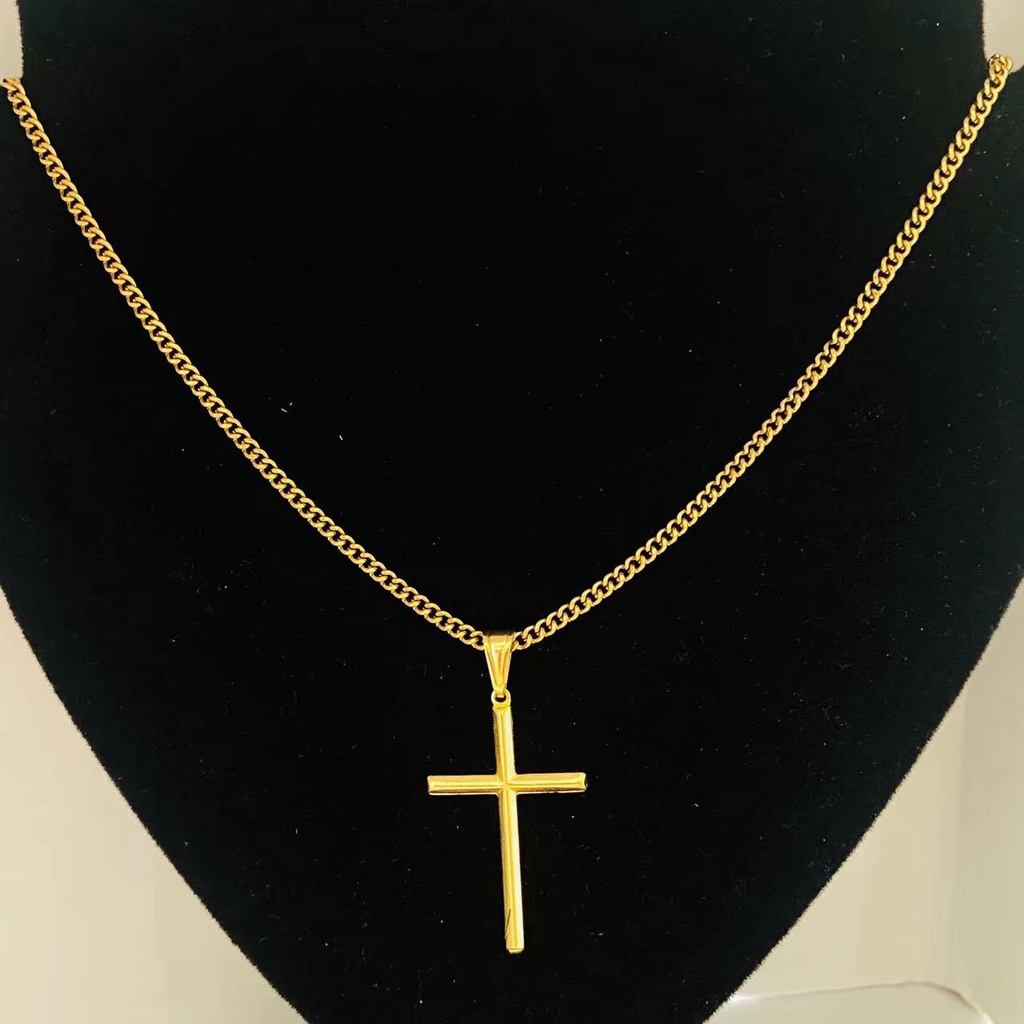Corrente masculina de corda de arame banhada a ouro 18K 60cm 3mm com pingente de cruz