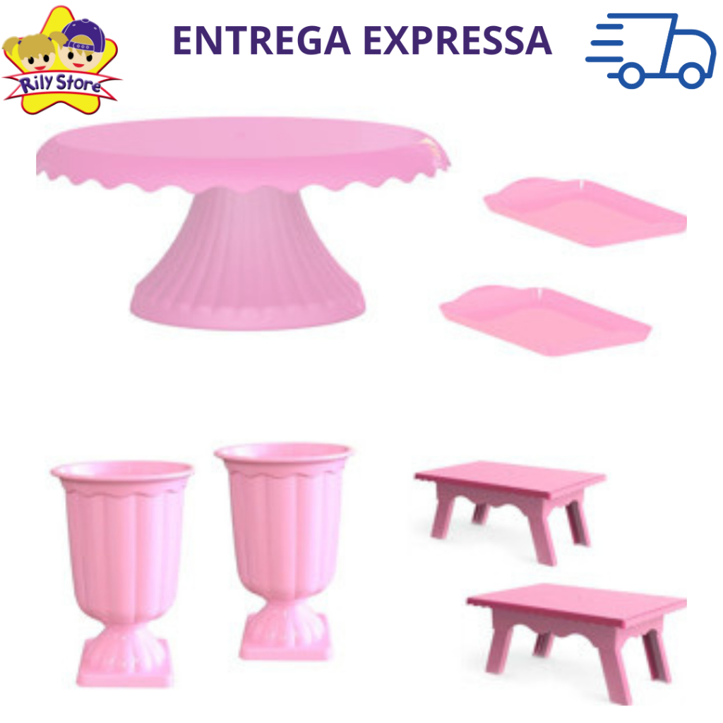 Kit Festa 1 Boleira Renda Cake 22cm + 2 Vasos Grego + 2 Mesinhas - (+11 cores)