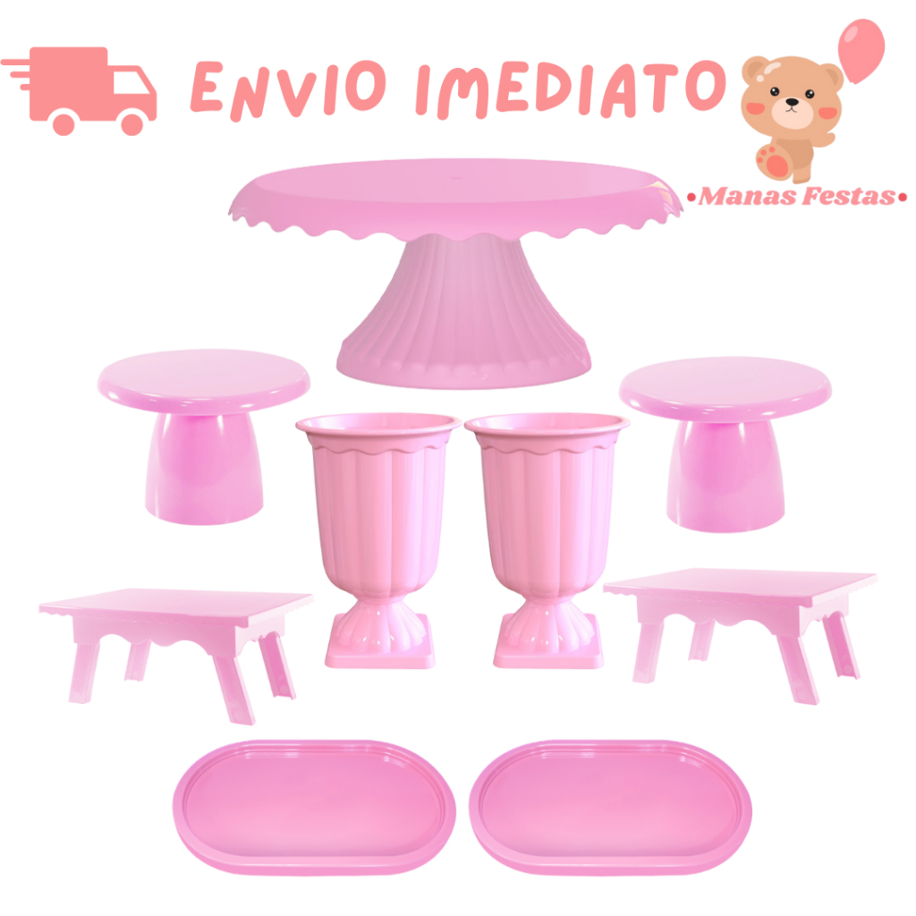 Kit Boleira Cake Renda 19cm - 2 Vasos Grego 2 Mesinhas e 2 Bandejas 20x13 Diversas Cores