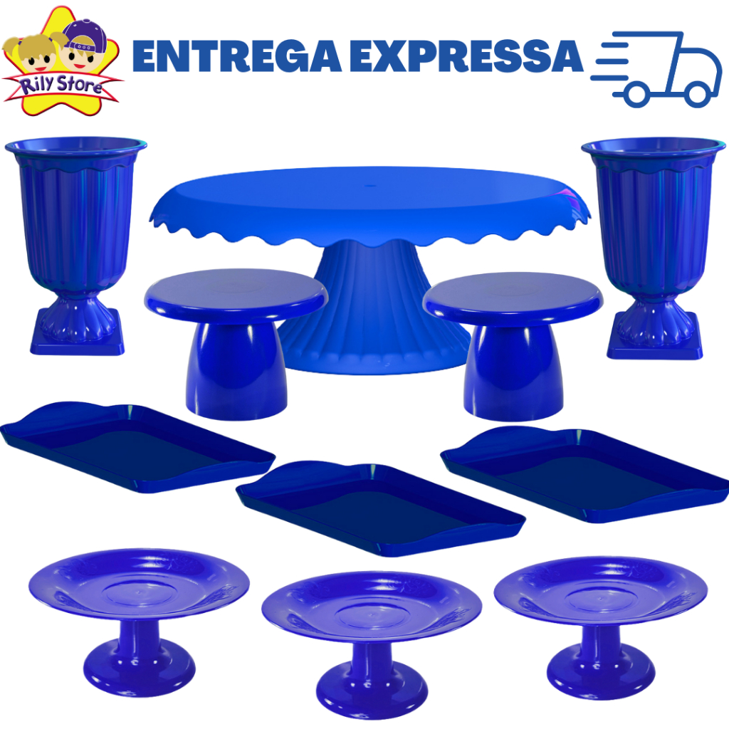 Kit New Sofisticado Boleira Cake Renda 19cm + 2 Mesinhas + 2 Vasos Grego + 2 Bandejas Oval + 2 Mini Slim - Variedade de Cores (9 Peças)(+8 Cores)