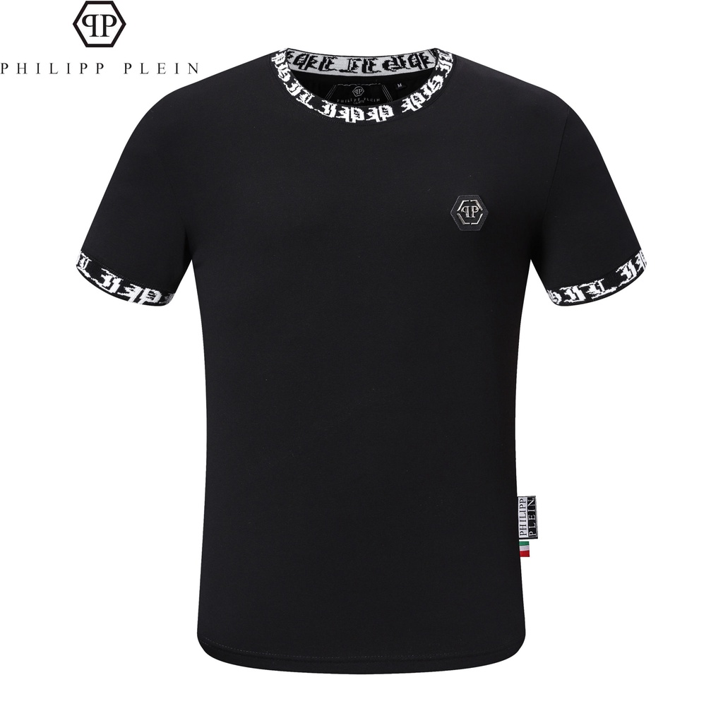 Novo Estilo Verão PHILIPP PLEIN Camiseta De Manga Curta Masculina Top Slim-Fit Algodão Puro Gola Redonda Confortável Elasticidade Respirável De Alta Qualidade