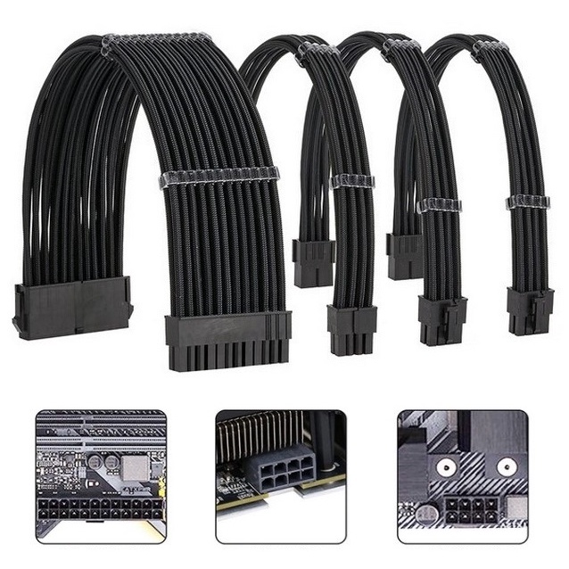 Kit 4 Cabos Sleeved Preto Extensor Fonte Atx Gpu Eps Pci-e Cabo Extensão Fonte de Energia para Placa mãe Cabo Sleeved Extensor Para Placa de Vídeo Gpu Cabo Cabo Extensor Alimentação de Energia Fonte x Placa Mãe De Computadores