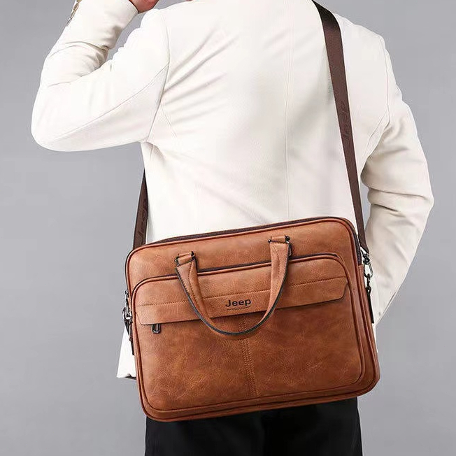Bolsa De Mão JEEP Para Homens Retro Mensageiros De Ombro Computadores De Escritório Documentos Horizontais Pasta De Viagem Negócios Couro Sintético Com Cabo Longo Transporte De Notebook E D