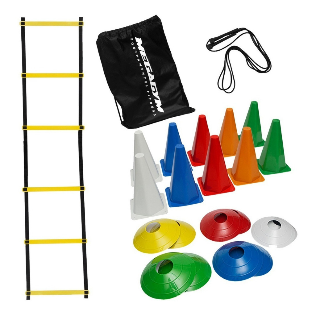 Kit Agilidade Funcional Com Escada De 7 Degraus + 10 Cones + 10 Chapeus + Corda De Pular