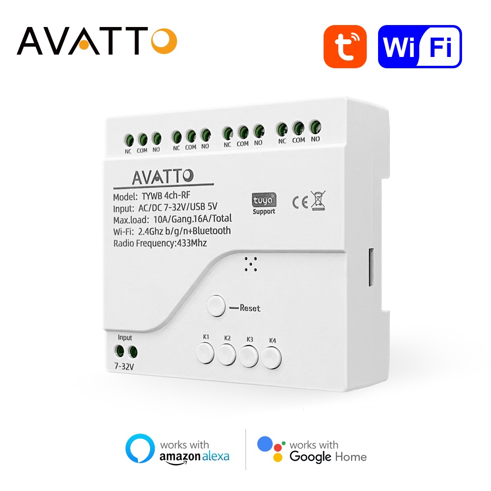 Módulo Interruptor Inteligente AVATTO Tuya WiFi 4 Canais , 7-32V/85-250V RF 433 Relé De Controle Remoto , De Voz Com Alexa Google Home
