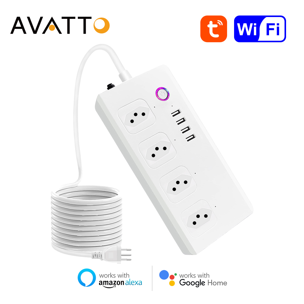 AVATTO Tuya WiFi Smart Power Strip , Brasil Standard 4 Saídas 4USB Saída De Portas , Trabalho De Controle De Voz Remoto Com Alexa Google home