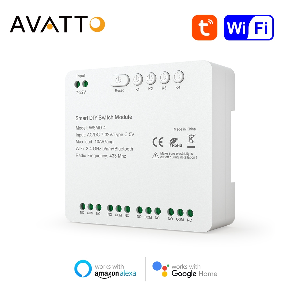 AVATTO Tuya WiFi 4 Canais Módulo De Interruptor Inteligente 7-32V/85-250V RF 433 Relé De Controle Remoto , De Velocidade Com Alexa Google Home