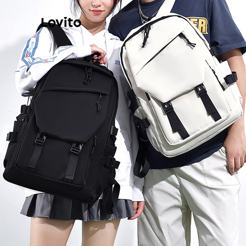 Lovito Mochila Casual De Alta Capacidade Com Zíper Simples Para Mulheres LNA09180 (Preto)