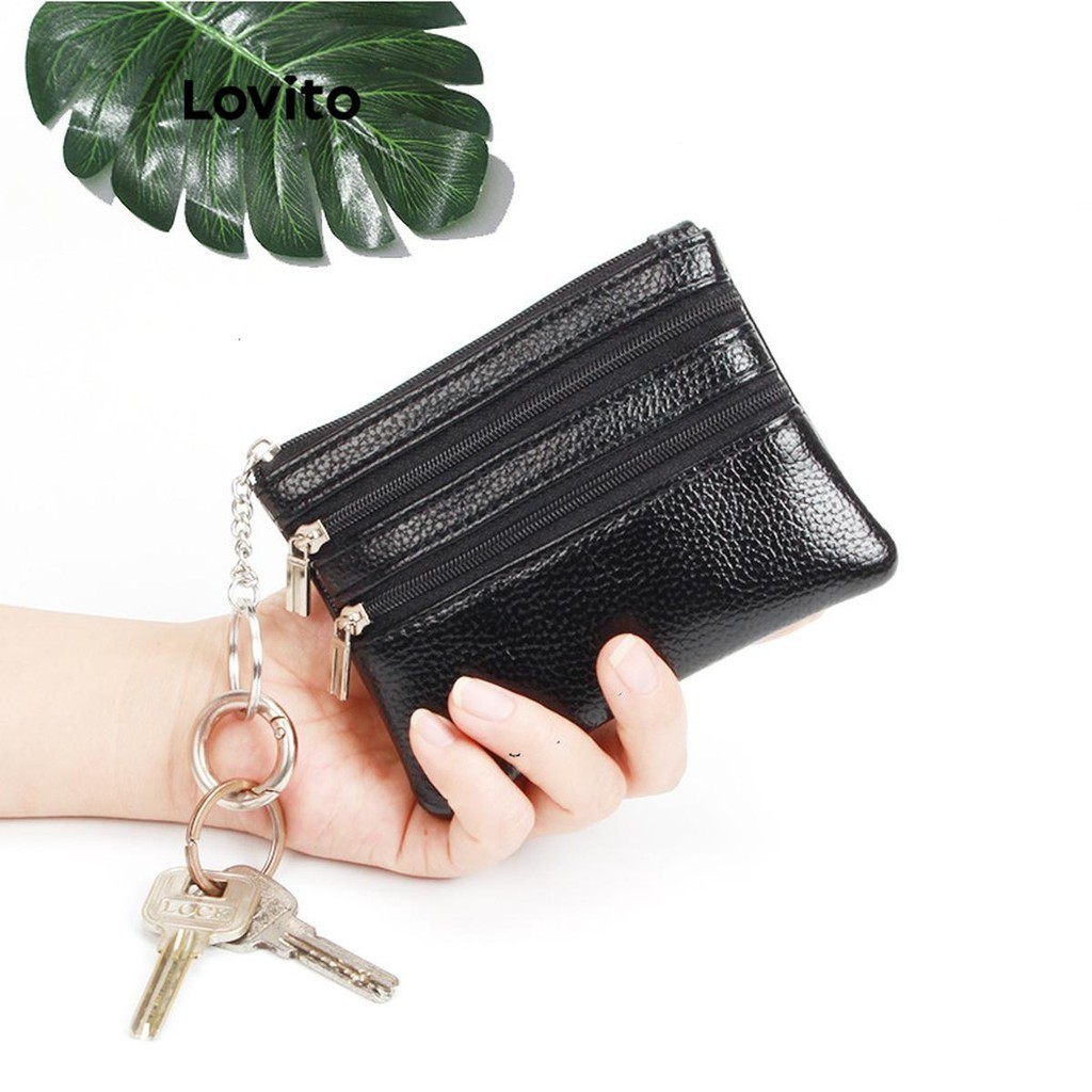 Lovito Carteiras casuais simples Padrão com zíper leve e luxuosa de alta capacidade para mulheres LFA21437